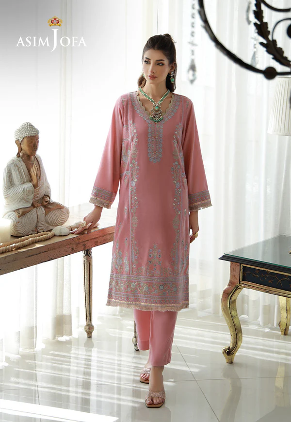 Immerse yourself in the gentle allure of light peach velvet, a soft pastel expression of refined elegance. The richly embroidered shirt, accented with delicate lace detailing, reflects graceful craftsmanship and understated beauty. Paired with plain trousers, this ensemble exudes effortless charm and timeless sophistication.