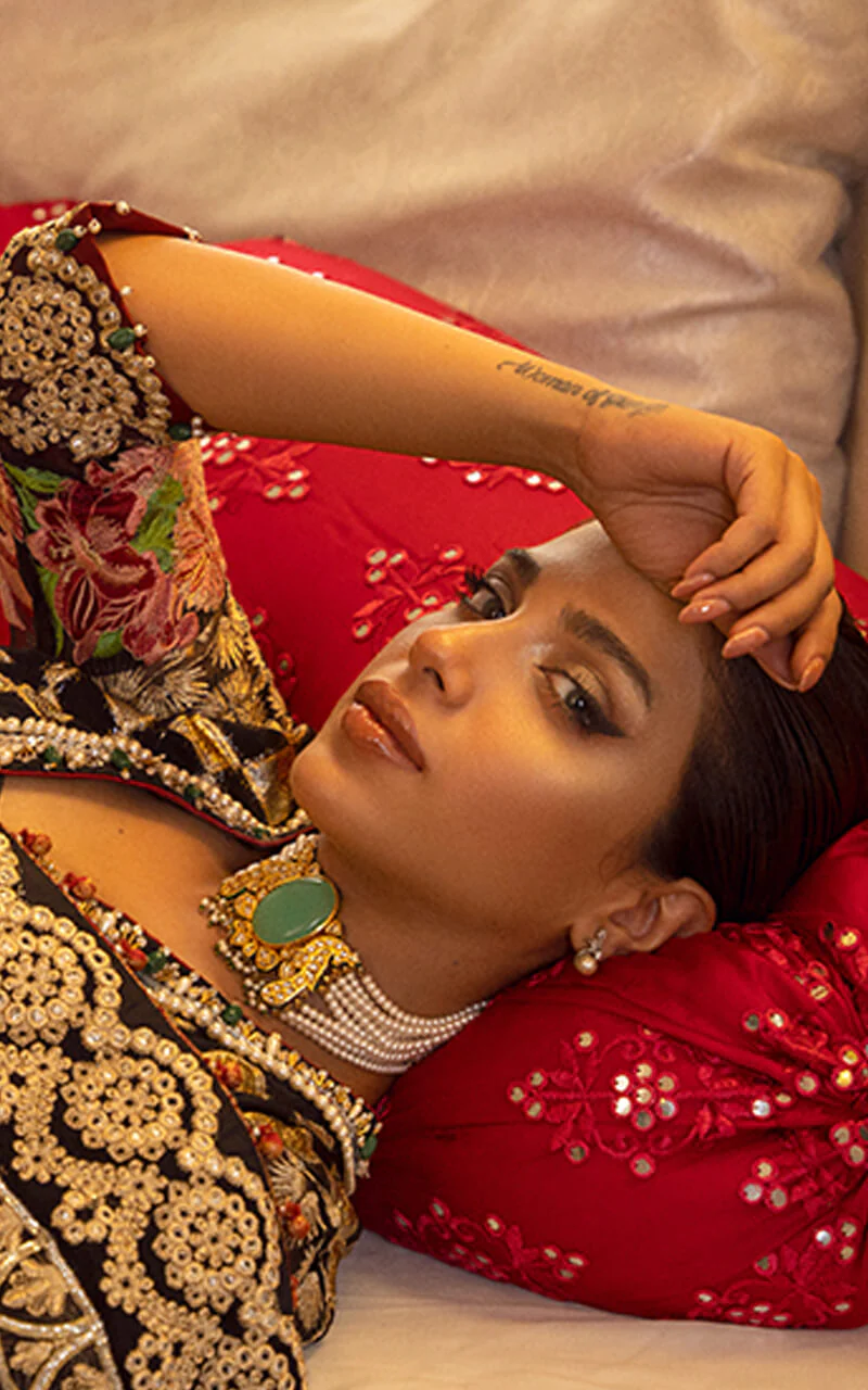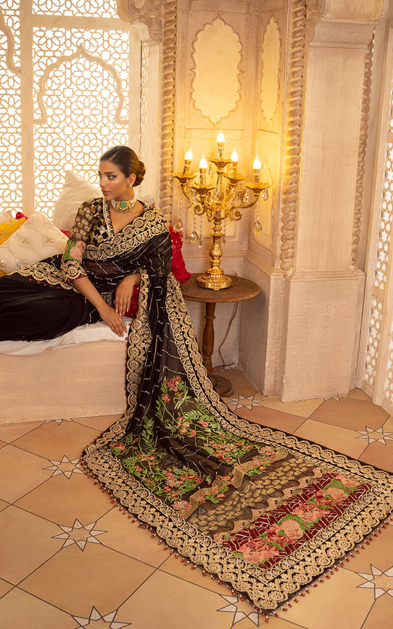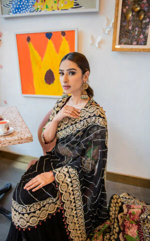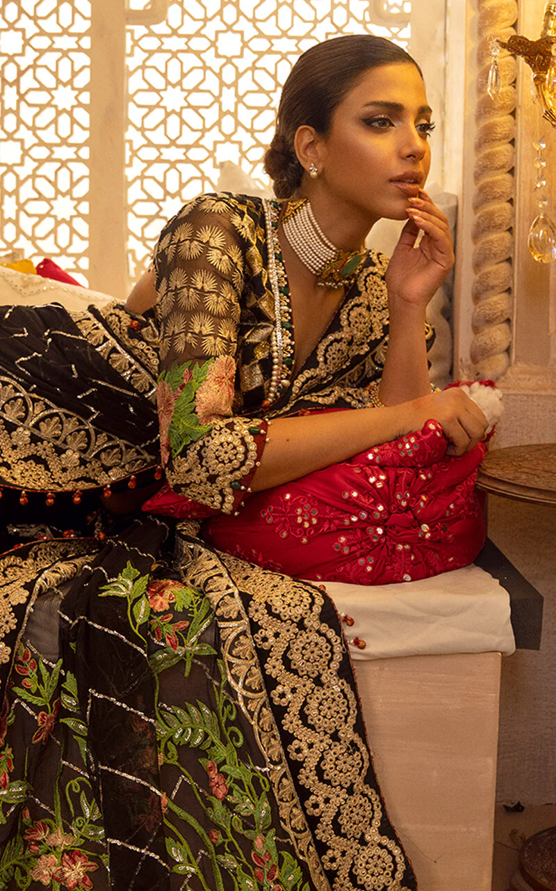 Fully Embroidered sequined sleeves on dyed organza.